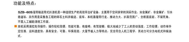 產品特性:履帶皮帶扒渣機,皮帶扒渣機,履帶扒渣機,扒渣機,煤礦用挖掘式裝載機
